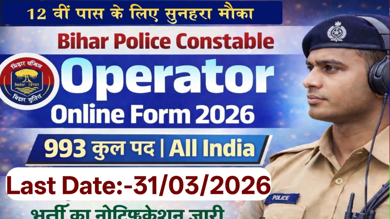 Bihar Police Constable Operator Recruitment 2026 बिहार पुलिस में नौकरी पाने का शानदार अवसर है। इस भर्ती के तहत 993 पदों पर भर्ती की जाएगी और आवेदन 01 मार्च से 31 मार्च 2026 तक किए जा सकते हैं।