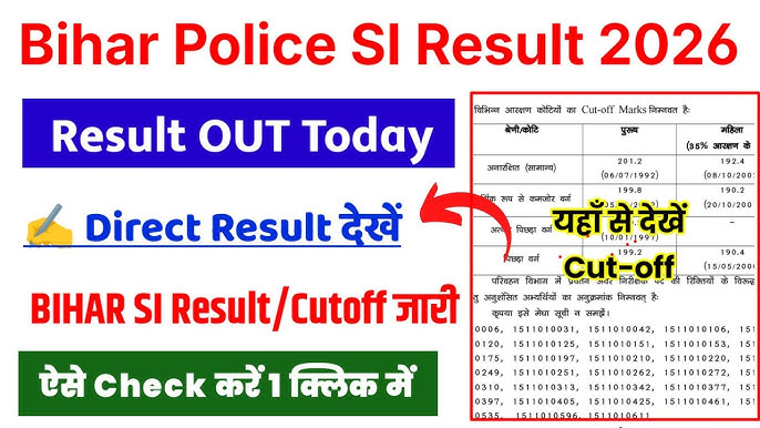 Bihar Police SI Result 2026 का इंतजार कर रहे लाखों उम्मीदवारों के लिए बड़ी खबर सामने आई है। Bihar Police Subordinate Services Commission (BPSSC) ने दरोगा (Sub-Inspector) प्रीलिम्स परीक्षा 2026 का रिजल्ट आधिकारिक वेबसाइट पर जारी कर दिया है।