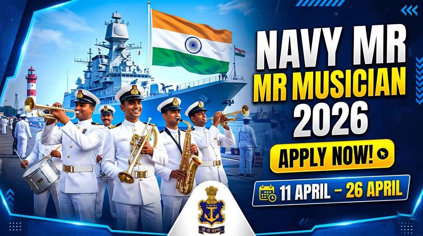 Indian Navy MR Musician Recruitment 2026 उन युवाओं के लिए बेहतरीन मौका है जो देश सेवा के साथ-साथ म्यूजिक में करियर बनाना चाहते हैं। बिना किसी फीस के आवेदन और शानदार अवसर इसे और खास बनाता है।
