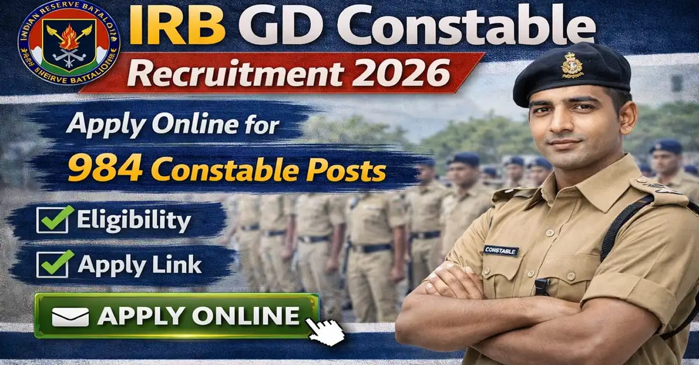 IRB GD Constable Recruitment 2026 उन उम्मीदवारों के लिए शानदार मौका है जो पुलिस/फोर्स में करियर बनाना चाहते हैं। 984 पदों की यह भर्ती एक बड़ी अवसर है।